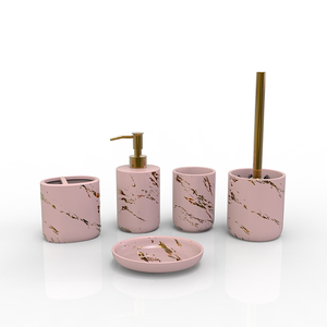 Accesorios decorativos para el hogar, accesorios de baño de cerámica con diseño de mármol dorado moderno