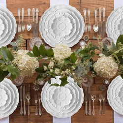 Platos de porcelana con flores en relieve blanco, juegos de vajilla de cerámica, plato de cena
