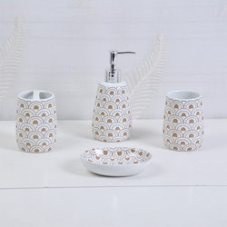 Conjunto de accesorios de baño de cerámica brillante nórdico de Venta caliente conjunto de baño de cerámica de diseño de mármol blanco y dorado